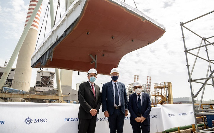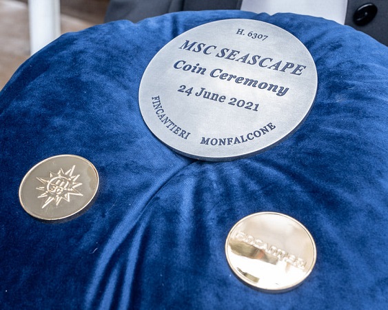 Dlhoročné zamestnankyne Monica Somma, manažérka kategórie, MSC Cruises a Jolette Vincenzi - vedúca výroby, Fincantieri, vykonali v úlohe kmotier tradičný námorný rituál vložením dvoch mincí do kýlu lode ako symbolický znak požehnania a šťastia počas stavby lode a jej budúceho života na mori.