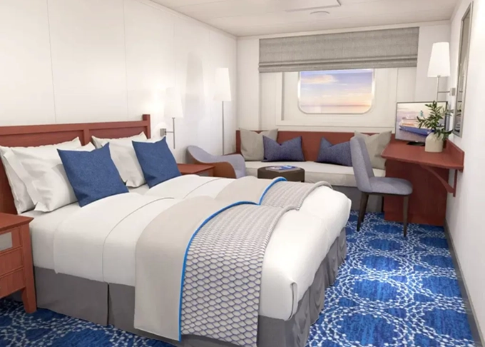 XC - Kajuta s oknom Cosmos 17 m². Neotvárateľné okno, sofa. 4,5. paluba. Max 3 osoby. 2 778 € 1 389 € za osobu